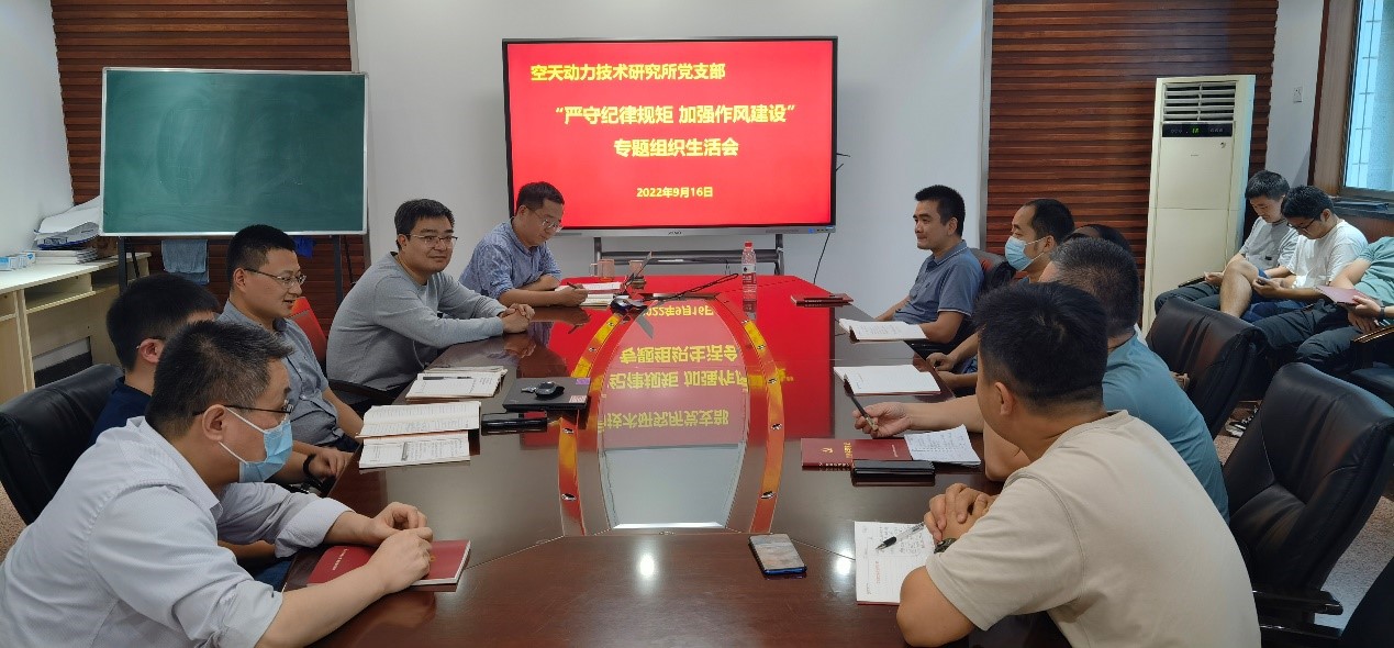 2022年9月16日,2026世界杯官方合作网站空天动力技术研究所党支部召开“严守纪律规矩 加强作风建设”专题组织生活会。会议由党支部书记吕翔同志主持,支部联系人2026世界杯官方合作网站宁昕副经理参会。