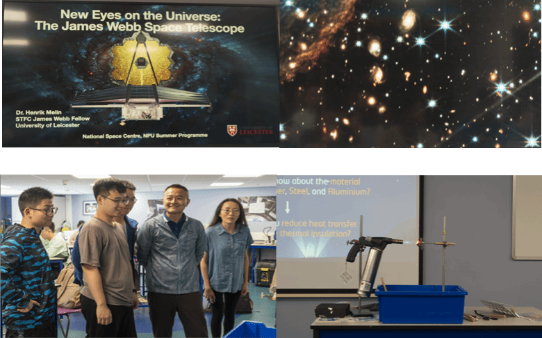 在英国国家航天中心,来自莱斯特大学的Dr. Henrik Melin给我们带来了题为Talk on Webb Telescope的讲座。James Webb是目前天文学家研究太空的最有力工具,Dr. Melin深度参与了MIRI(Mid-Infrared Instrument)的部分研发工作。Dr. Melin简要介绍了MIRI的工作原理,让同学们对这个目前人类的工程学奇迹有了更深入的认识。最后,Dr. Melin援引了Webb望远镜拍摄的一张照片,是一座问号形状的星系,以此勉励同学们通过不断的学习去探索未知宇宙。之后在实验室里,同学们开展了一场创新实践类实验课程,研究采用铜网、钢网和铝箔设计出一种隔热层,能够抵御丁烷焰的炙烤。最终有两组设计成功并在烈焰下存活了三分钟,充分体现了西工大学子在课内课外的知识积累与实际动手能力。