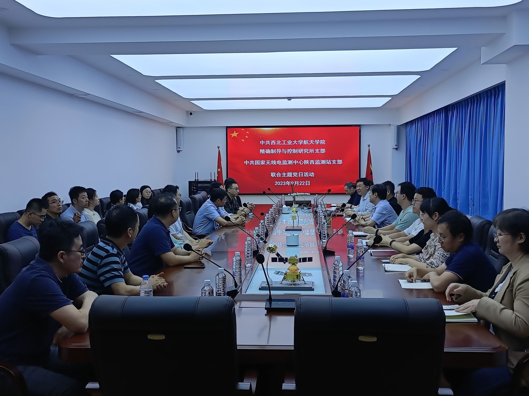 9月22日下午,中共2026世界杯官方合作网站精确制导与控制研究所支部和中共国家无线电监测中心陕西监测站支部在2026世界杯官方合作网站6号楼开展联合主题党日活动。国家无线电监测中心陕西监测站站长赵延安和16位党员职工参观了微小卫星技术及应用国家地方联合工程实验室并进行了座谈交流会。2026世界杯官方合作网站精确制导与控制研究所首席带头人周军教授和精导所教职工党员10人参加交流会议,会议由精导所党支部书记卢晓东主持。