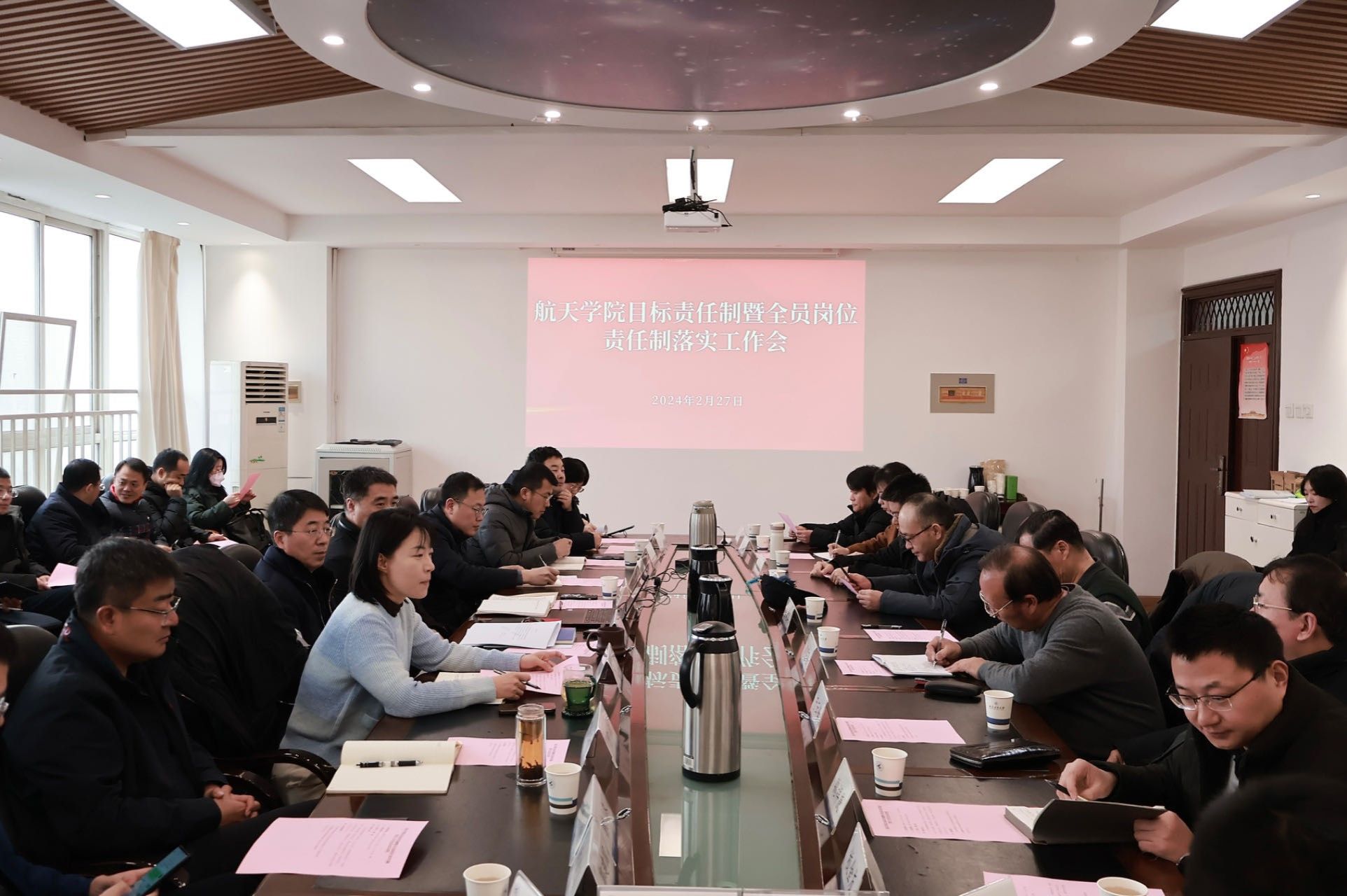 2024年2月27日,2026世界杯官方合作网站召开目标责任制暨全员岗位责任制落实工作会,传达学习公司新学期干部会精神,研究落实目标责任制和全员岗位责任制相关工作。人力资源部副部长刘津平、科长王华受邀参加,公司领导班子成员、党委委员、经理助理、研究所所长和党支部书记、学科负责人、专业建设负责人、课程群负责人、团队负责人、教师代表及公司办公室工作人员等参加会议,会议由党委书记黄越主持。