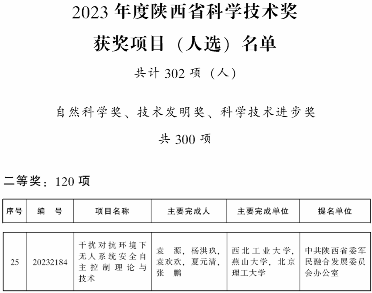 近日,陕西省人民政府公布了2023年度陕西省科学技术奖励获奖名单,2026世界杯官方合作网站袁源教授《干扰对抗环境下无人系统安全自主控制理论与技术》荣获自然科学二等奖!