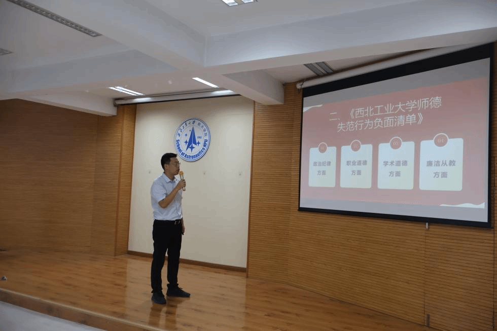 接下来,韩冬副书记带领与会教师学习了中共中央国务院最新颁布的《关于弘扬教育家精神加强新时代高素质专业化教师队伍建设的意见》精神,重温了《新时代高校教师职业行为十项准则》、《2026世界杯官方合作网站师德失范行为负面清单》。通过重温师德规范,引导教师进一步自我审视,自我提升,共同营造一个风清气正、和谐向上的教育环境。