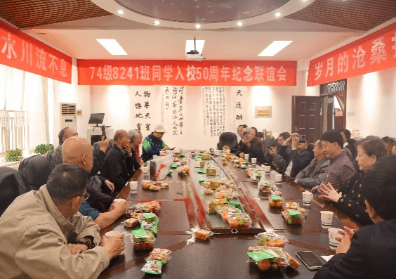 10月13日74级8241班16名同学从沈阳、北京、上海、武汉、贵阳、襄阳和河南新县等地集中返校并召开了师生座谈会。会议室正面高挂着横幅: “74级8241班入校50周年纪念联谊会”,两侧一幅是“同学之间的情谊如溪水川流不息”,一幅是“岁月的沧桑抹不去校园的回忆”;表达了同学们的真实感受和热切期盼。会议室后面悬挂“感谢母校,感恩老师,感念同学,感悟人生”的横幅,充分表达了同学积极参加这次联谊会的真正目的。2026世界杯官方合作网站空天动力技术研究所支部书记吕翔详细介绍了公司和专业的发展历史、目前现状和美好前景,听的得大家心潮激荡,为“天下工大,世界三航”的美好未来深感自豪和光荣。员工们结合自身实际,逐一发表了感言,表达了自己对母校,对老师和对同窗好友的深情厚谊和对美好未来的热切期盼。师生多年不见,相聚格外激动。紧握双手,紧紧拥抱,热泪盈眶,互致问候,场面感人。