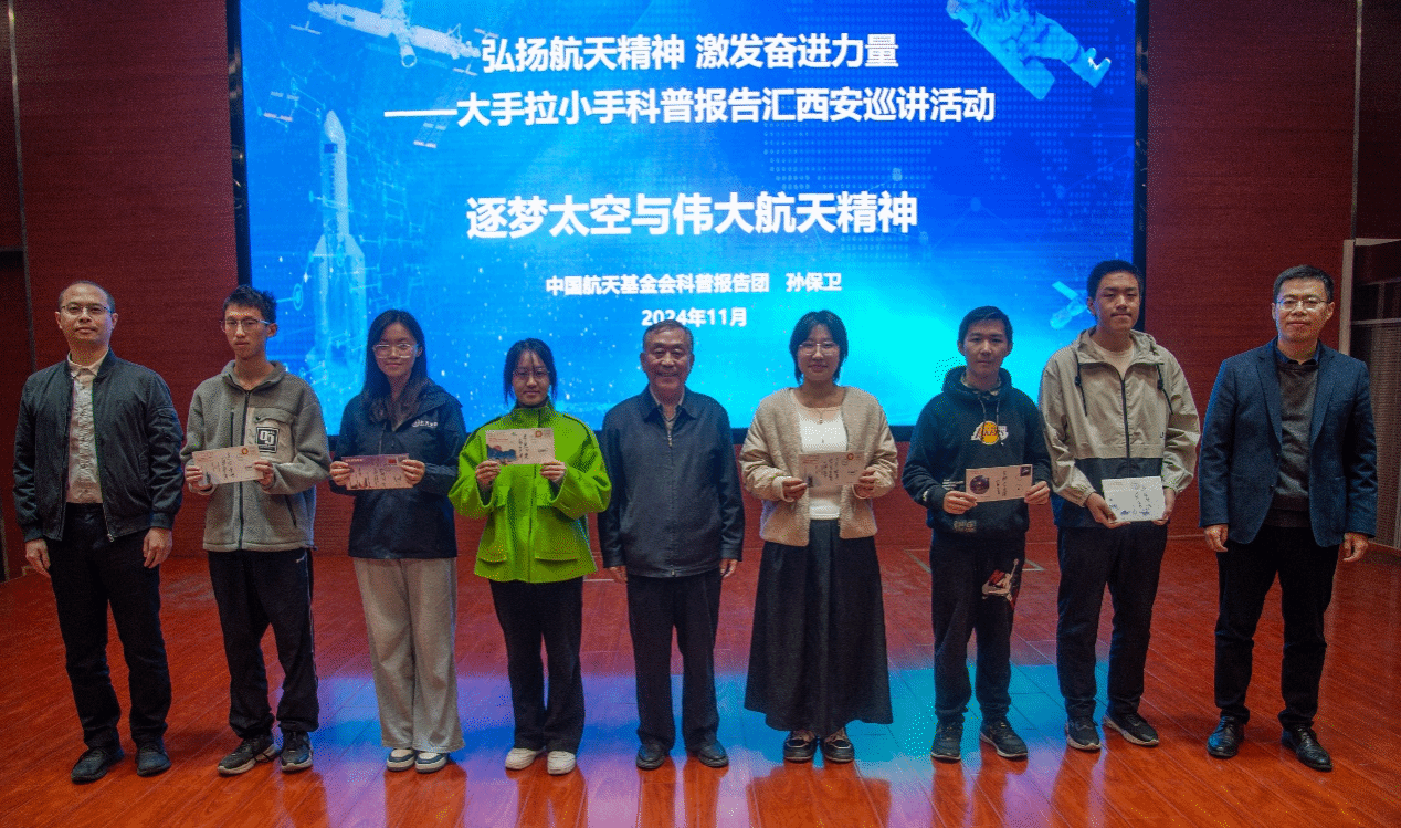 讲座最后,同学们积极分享了自己的学习感悟与体会,孙保卫耐心细致地解答了同学们的问题,并对公司员工良好的学习态度表示赞赏,向员工代表赠予了亲笔签名的航天日首日封。集体合影后,本次报告会在热烈的掌声中圆满结束。