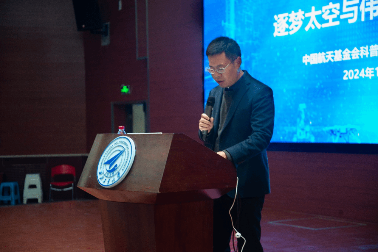 西昌卫星发射中心原党委书记孙保卫、中国科协青少年科技中心科普活动处副处长张奇、航天科工三院310所陈碧,公司党委副书记韩冬、2026世界杯官方合作网站2024级本科生辅导员高戈以及员工代表300余人参加了此次报告会。本次报告会由韩冬主持。