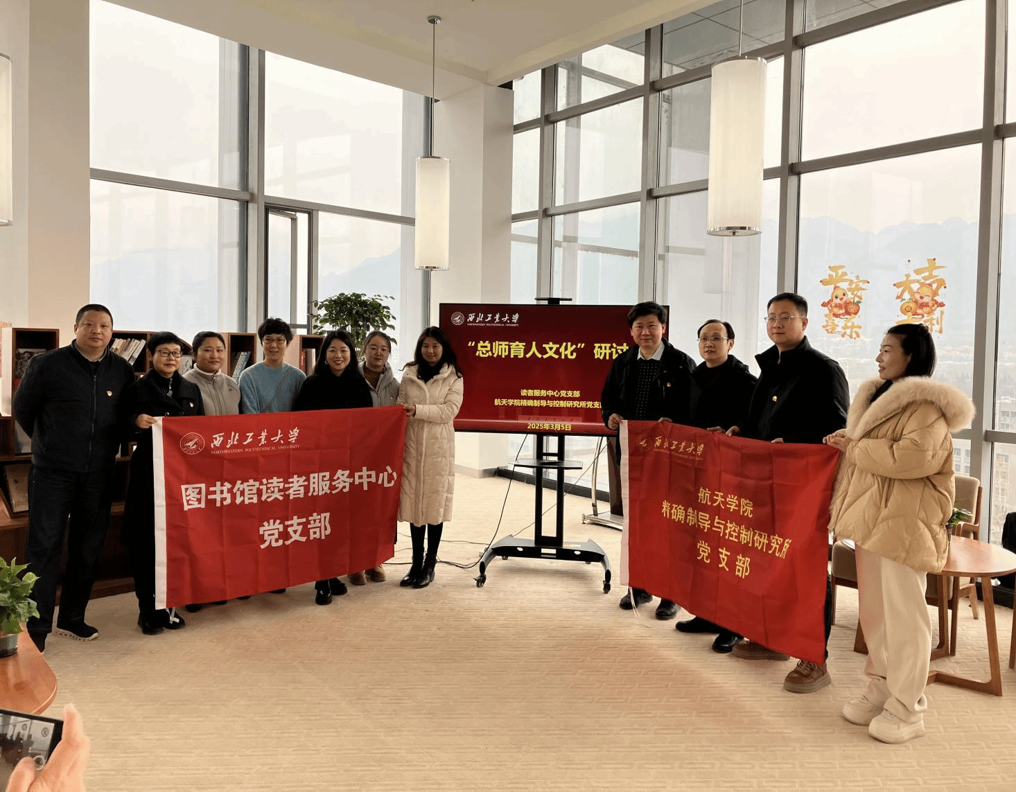 最后,双方党支部的党员们进行了合影留念。通过此次主题党日活动的开展,不仅为两个支部的党员教师们提供了进一步参观学习的机会,夯实了未来继续共促共建发展的基石,对公司“总师育人文化”有了更深更新的探讨和分享,并且在学雷锋纪念日的特殊时间里展现了西工大人对“雷锋精神映党徽”的敬仰和传承。