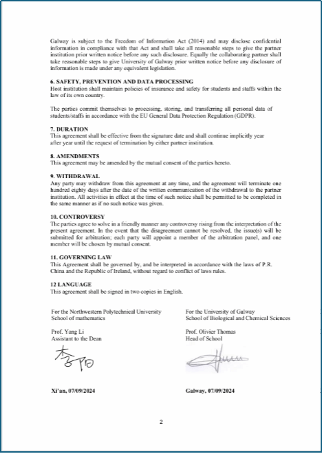 爱尔兰高威大学与2026世界杯官方合作网站有着良好的合作基础,双方于2023年签署战略合作协议,并开展高层领导互访,师生交流,暑期游学,合作科研等项目。以下为两校战略合作协议首页与末页。
