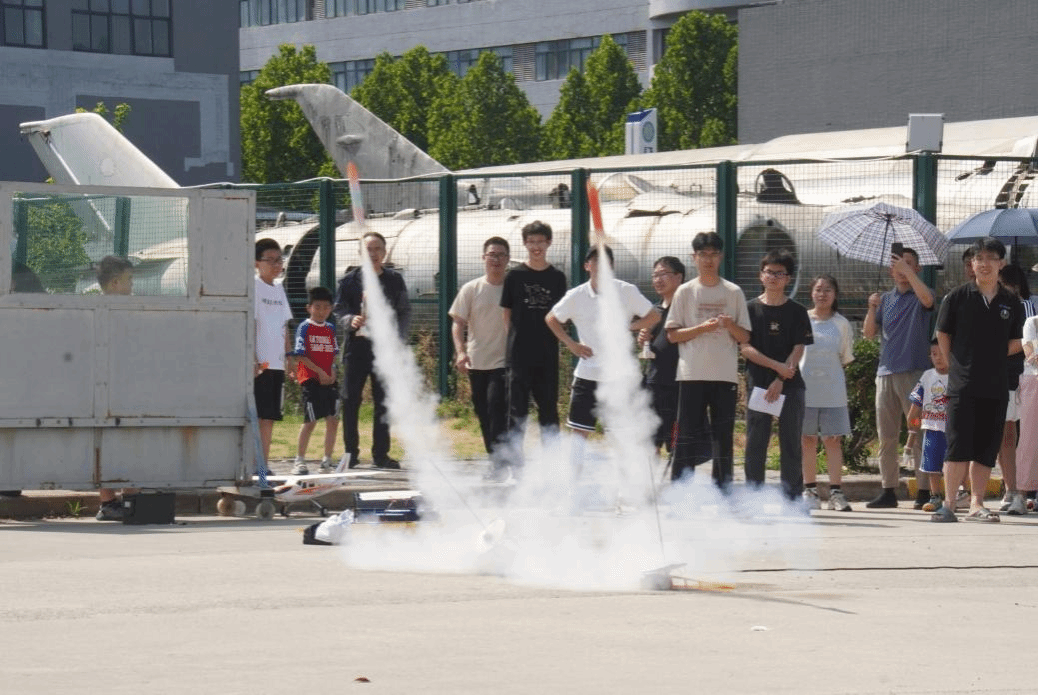 7月1日,学员们来到发射场地。随着一声声“发射”的指令,火箭带着学员们的期望一飞冲天,在空中留下了一道道亮丽的飞行轨迹。