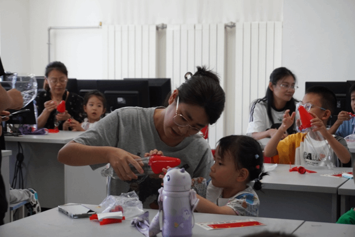 暑期公司期间,星辰俱乐部还面向公司教职工子女举办了“航小天火箭培训班”,讲授火箭基础知识,并辅导制作固体模型火箭和水火箭。看着自己的小火箭直冲云霄,孩子和家长的脸上都洋溢着笑容,孩子们心中已经悄悄埋下了一颗颗航天梦的种子。