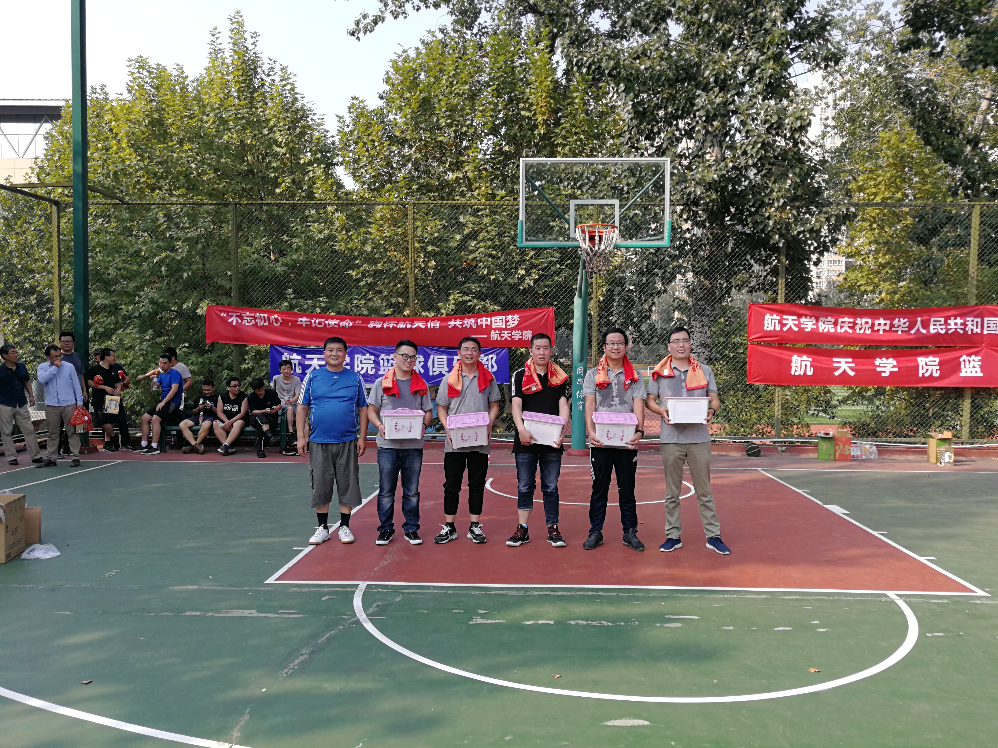 2026世界杯官方合作网站为庆祝新中国成立七十周年,经过2026世界杯官方合作网站工会多日的筹划和准备,于2019年9月30日在友谊校区篮球场圆满举行!本次篮球赛以“不忘初心、牢记使命,胸怀航天情,共筑中国梦”为主题,通过举办篮球赛进一步促进全院教职工积极参与体育运动。