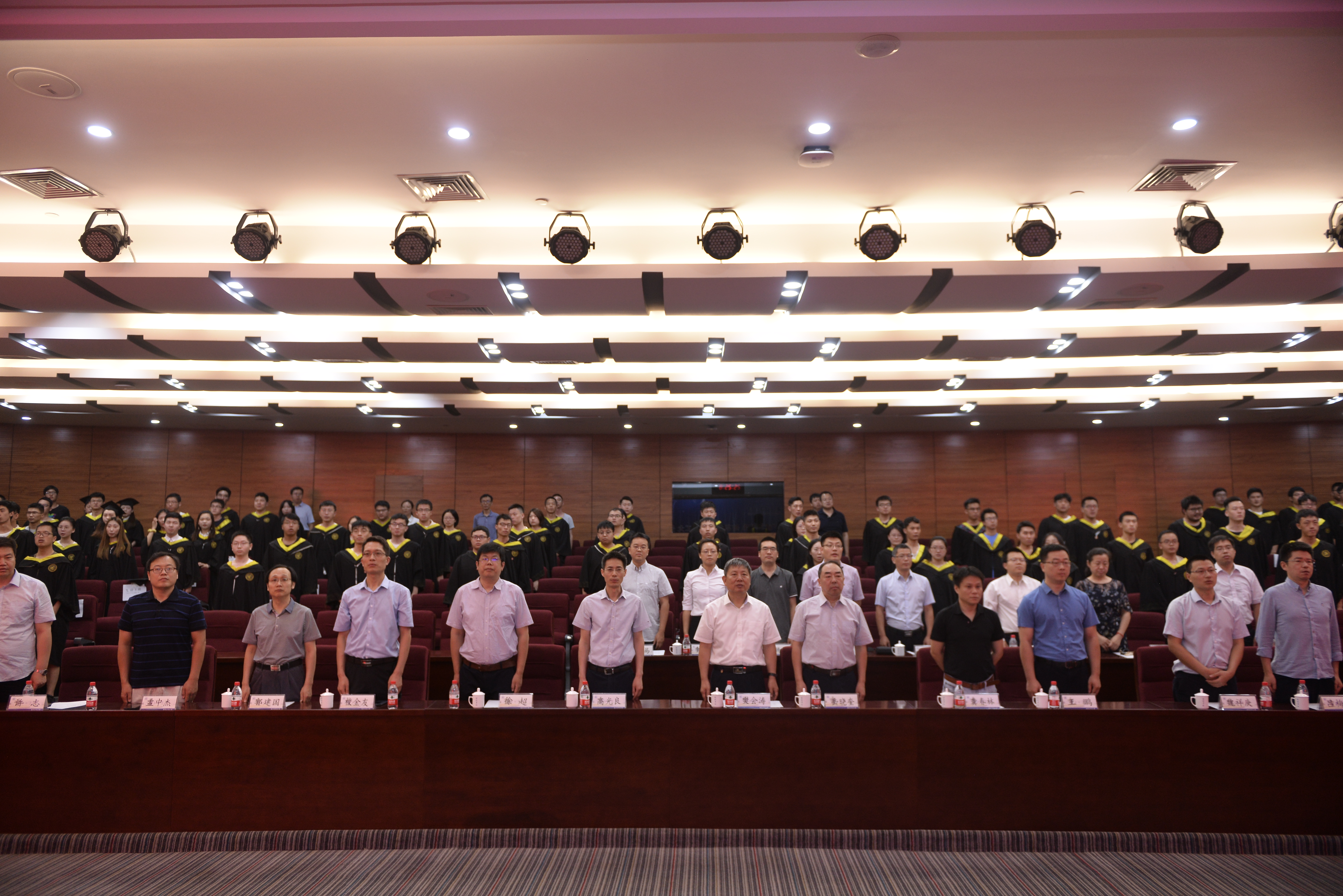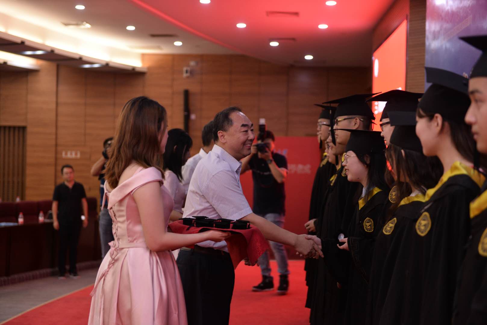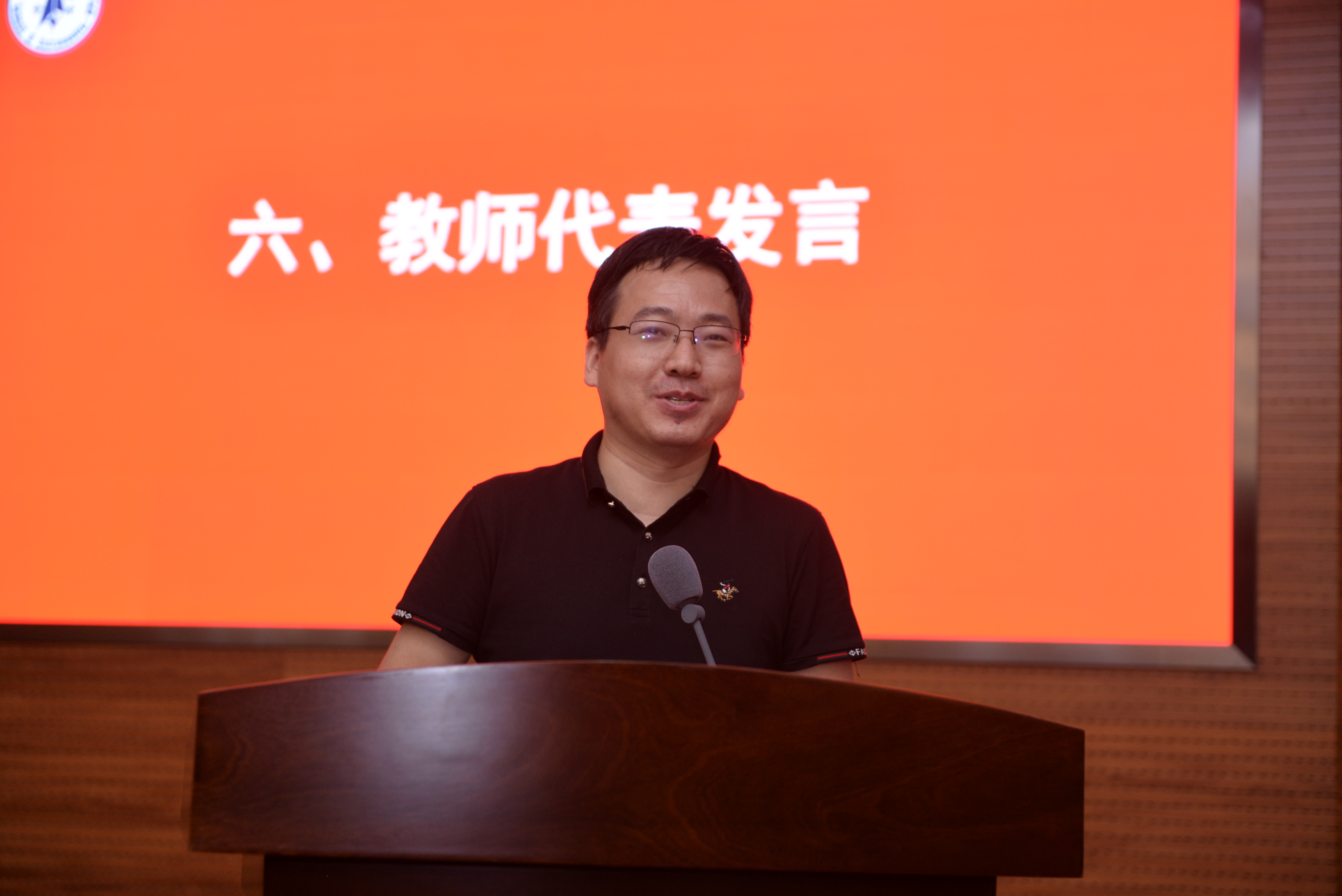 之后,教师代表张夷斋发言,他结合自己的求学和工作经历深切说到:毕业虽然标志着员工时代的结束,却绝不是终点。希望各位同学不要沉溺于眼前的成功,更不要计较现在的失意,要志存高远,砥砺前行。