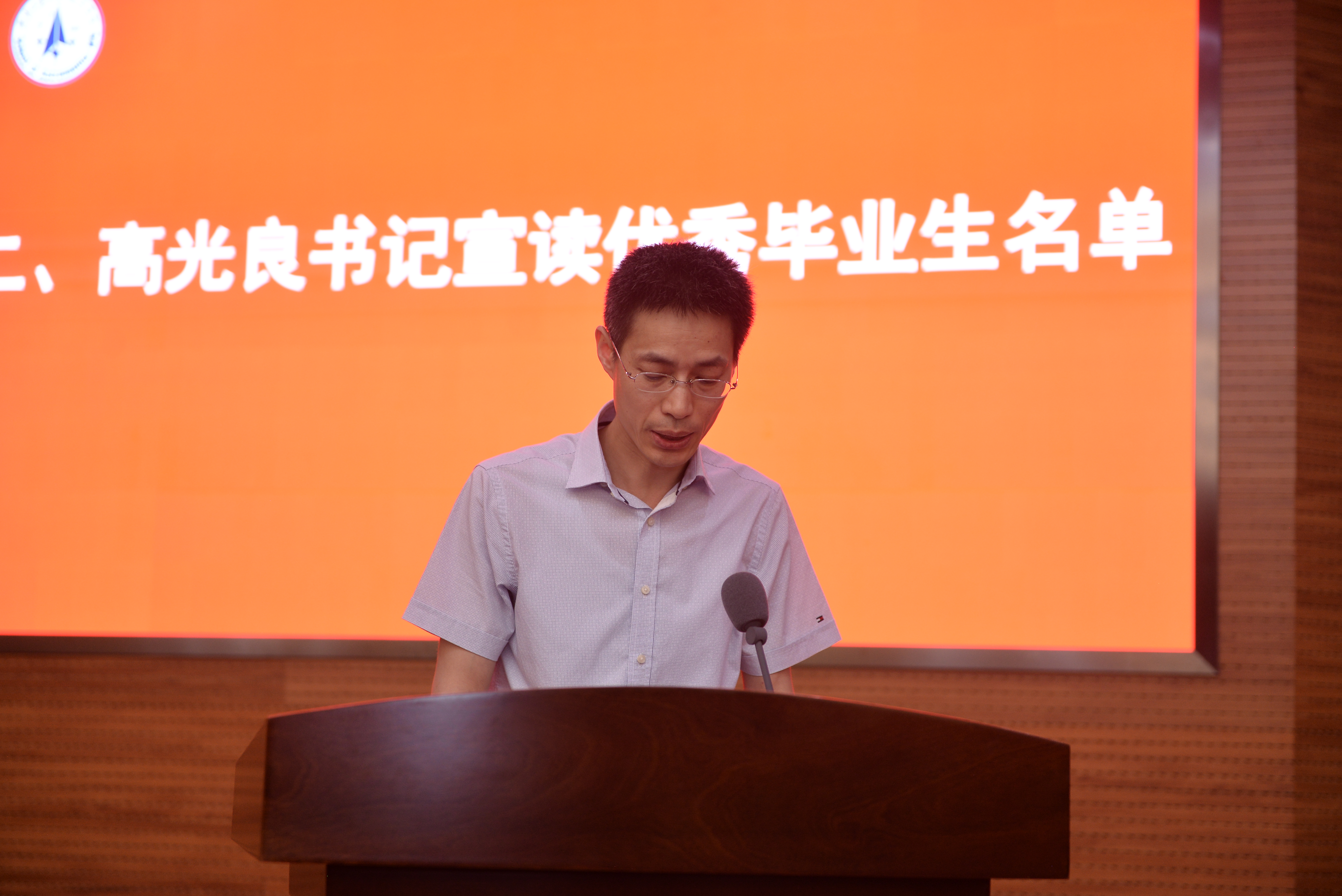 最后,经理樊会涛院士语重心长地为毕业生送上一堂“家国情怀”毕业思政课。樊院士通过现场聆听习近平总书记给科学家代表的亲切回信,感触很深,希望同学们牢记总书记的殷殷嘱托,树立与这个时代同心同向的理想信念,勇担时代赋予的历史使命,在新时代创新创造创业的生动实践中建功立业。樊院士结合三十多年的科研经历,提三点希望与各位航天学子共勉:一是希望同学们热爱国防事业。鼓励要自觉把个人奋斗融入国防事业发展,把个人理想融入民族复兴大业,为国家安全、民族振兴做出自己应有的贡献。二是希望同学们崇尚科学精神。科学的真谛在于求真,科研工作是实打实的,来不得一点虚,容不得半点假;科学的生命在于创新,要树立全球视野,弘扬创新精神,培育创新能力,树立敢为天下先的志向和信心,敢于走别人没有走过的路;科学研究要有献身精神,要静得下心、受得了苦,耐得住寂寞,要做长期艰苦细致、默默无闻工作的打算。三是希望同学们学会做人做事。嘱托各位学子做人要海纳百川,诚信为本,忍让为先,要爱岗敬业,恪尽职守,潜心钻研,踏实工作,认认真真做好每一件事,把自己的心血和智慧撒播在祖国国防事业这片充满希望的田野上。