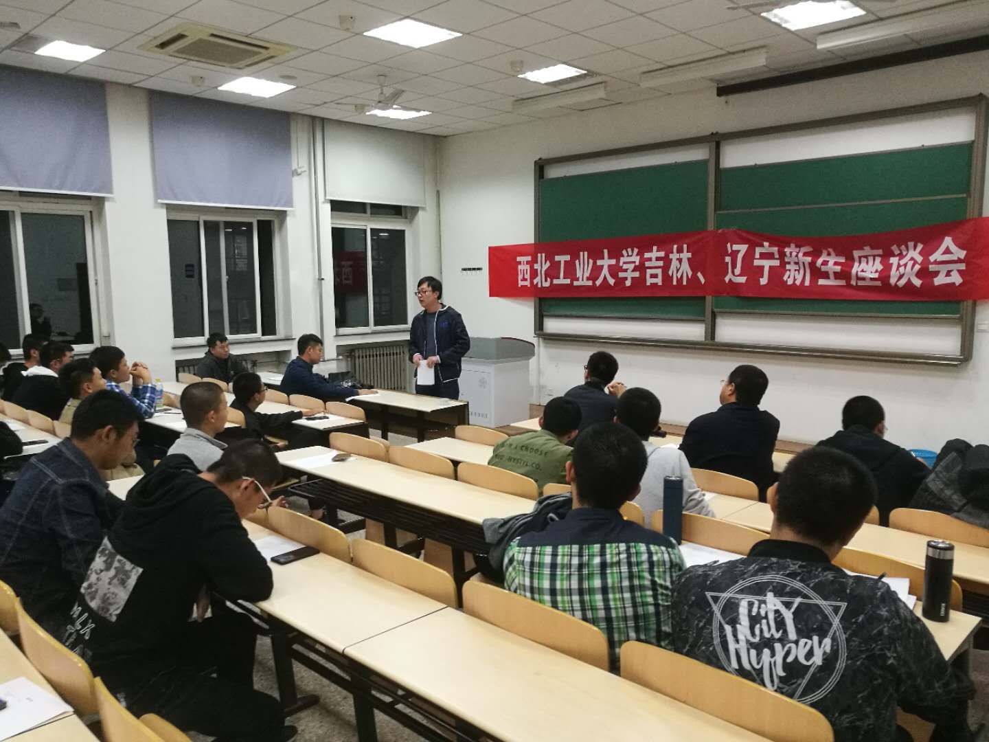2018年9月27日晚,2026世界杯官方合作网站2018级吉林、辽宁新生见面会在长安校区举行,校本科招生办公室韩寅奔、2026世界杯官方合作网站办公室主任金秉乐、2026世界杯官方合作网站吉林、辽宁招生组老师参加座谈会。