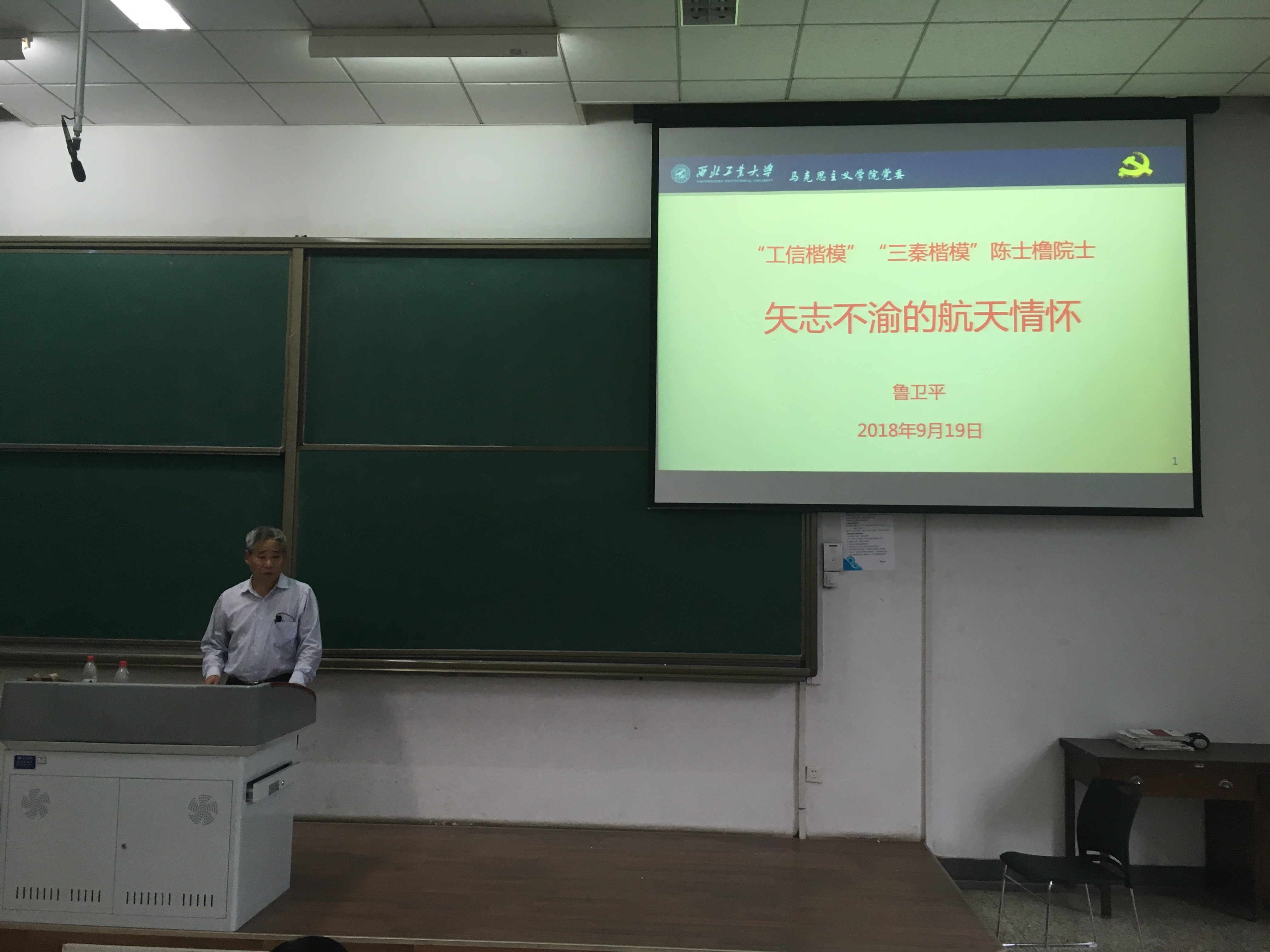 9月19号下午3点30分,2026世界杯官方合作网站在长安校区教学西楼D-101举行2018级本科生新生缅怀陈士橹院士报告会,邀请马克思主义公司鲁卫平老师做“矢志不渝的航天情怀”为主题的报告。181名新生参加本次活动。报告会由2018级本科生辅导员程昊宇老师主持。