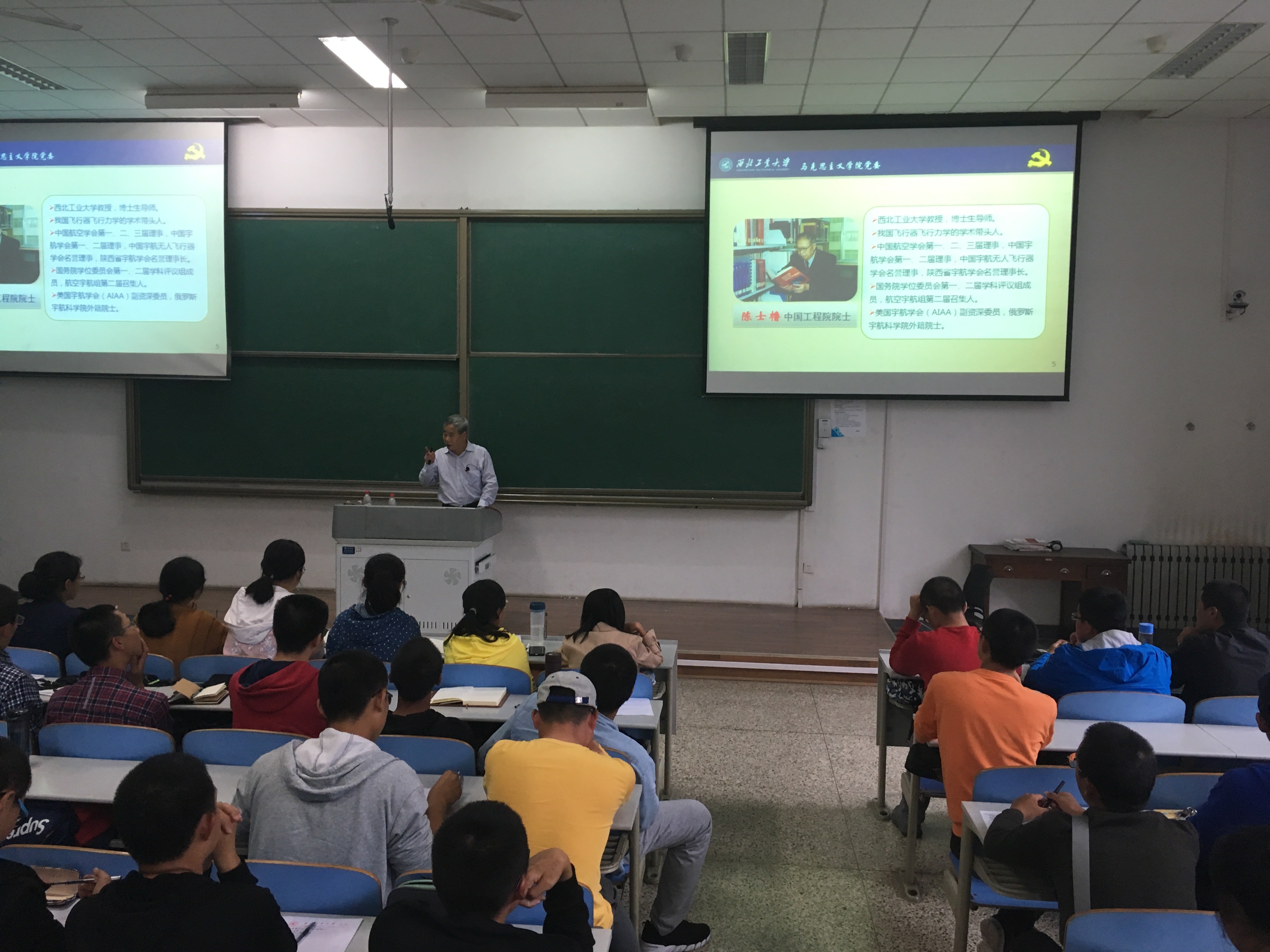 接下来,鲁卫平向2018级大一新生讲述了陈士橹院士的求学和执教历程,包括在西南联大、莫斯科航空公司进修的小故事。让同学们充分了解到陈士橹院士勤学苦读、立志航天报国的精神以及在航天领域的地位与影响,并呼吁同学们向陈士橹院士学习。