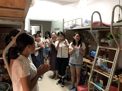 值得一提的是,为了让大家更体验到公司的人文关怀,也希望通过一次小范围的生日会更加拉近同学们之间的关系,慰问小组准备了生日蛋糕为8月30日过生日的张婧怡同学补一次生日。两位老师召集了2018级所有新入学的女生一起,同唱生日快乐歌,为张婧怡同学庆祝生日,也为所有新同学送祝福。张婧怡同学激动地表示道,真的太意外了,自己本科不是西工大的,来这里有点陌生,但是没想到公司会这么贴心,非常感动,以后希望和大家好好相处,共同度过两年多的同窗时光。
