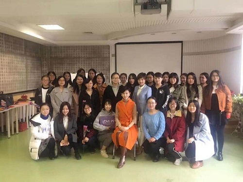 之后,优雅的史老师用两个小时,就女生在化妆技巧、着装搭配以及职场礼仪等方面做了详细的讲解。现场有不少女生成为幸运儿,被史老师亲自指导如何穿搭,如何找到最适合自己的风格。讲座中,史老师强调了个人素质修养与审美水平在日后职场道路上的重要作用,提醒聪慧的工大女生要从细节着手重视形象塑造。