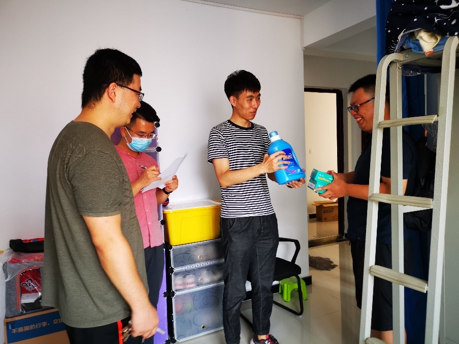 为全力做好宿舍疫情防控工作,帮助同学们适应新环境,公司为员工宿舍送去了洗衣液等生活物品,提醒同学们做好必要的防范措施,确保自己及身边人的身体健康。同时与同学们沟通生活及宿舍细节,提醒各位同学在生活上如有不适应的地方,要及时与辅导员老师沟通解决。
