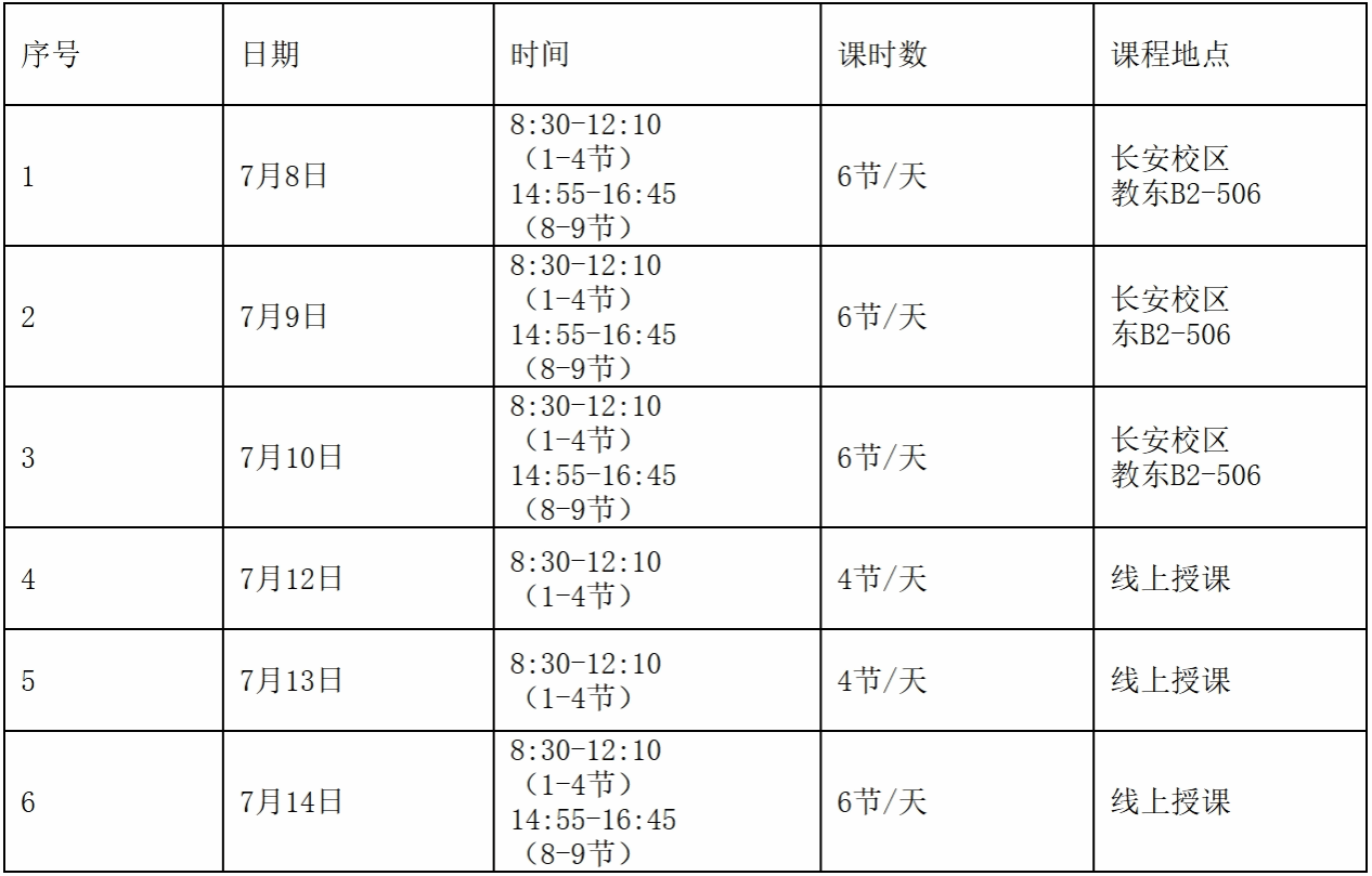 授课时间及地点: